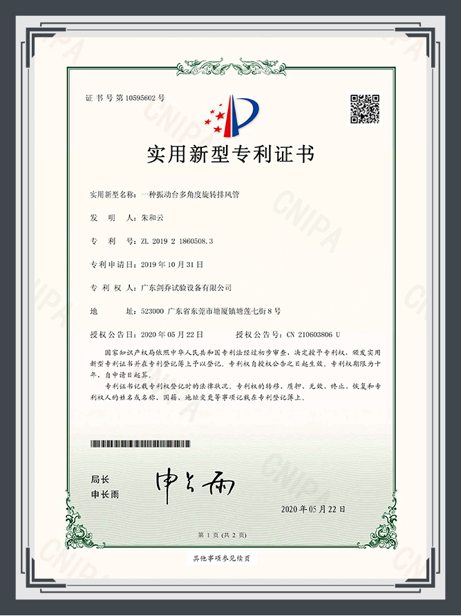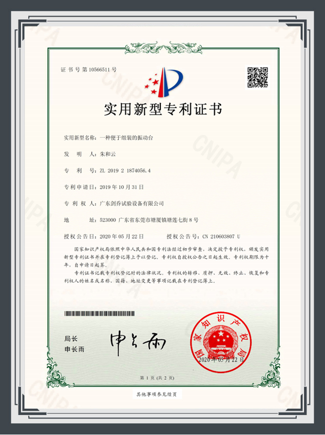 您好!歡迎光臨廣東劍喬試驗設備有限公司官網!主營:振動臺,振動試驗臺,電動振動臺,高頻振動臺,沖擊試驗臺