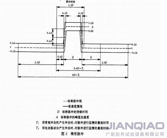 梯形脈沖能在較寬的頻譜上比半正弦形脈沖產(chǎn)生更高的響應(yīng)。如果試驗(yàn)的目的是為了模擬諸如空間探測器或衛(wèi)星發(fā)射階段爆炸螺栓所引起的沖擊環(huán)境的效應(yīng),便可采用這種沖擊波形。