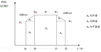 設w=wb+w1=0.2g²/Hz,fa=10Hz,fb=20Hz,f1=1000Hz,f2=2000Hz,由于fa 的wa 升至fb 的wb 處,斜率是3dB/oct,而wb=0.2g²/Hz,所以wa=0.1g²/Hz。